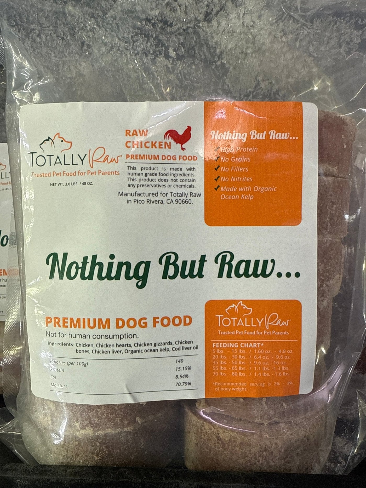 Ingredients: Chicken, Chicken Gizzards, Chicken Liver, Chicken Bones, Organic Ocean Kelp, Cod Liver Oil.